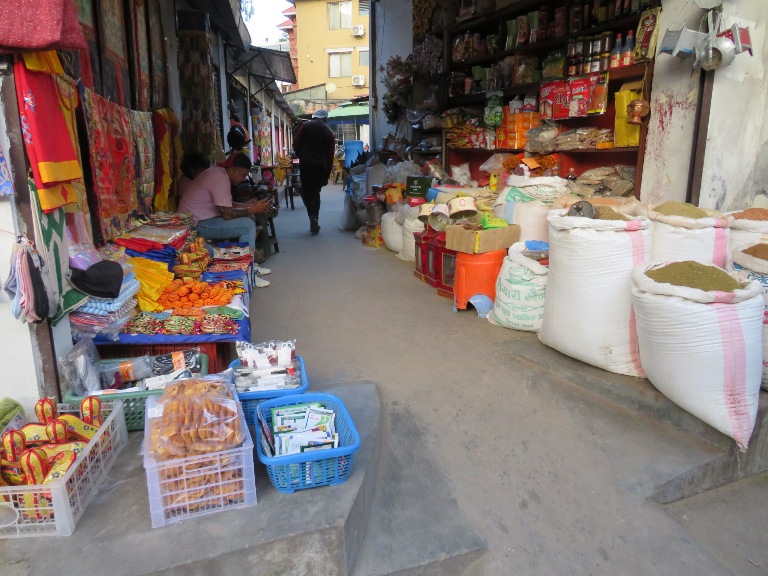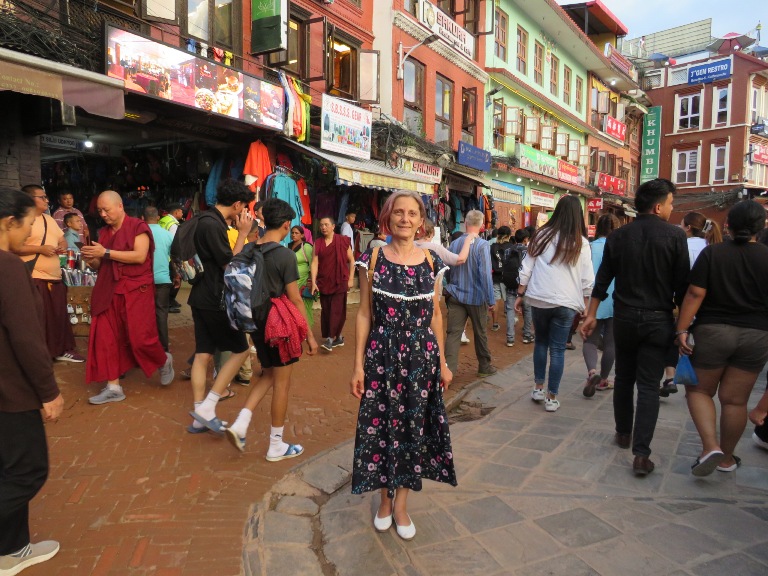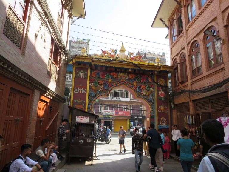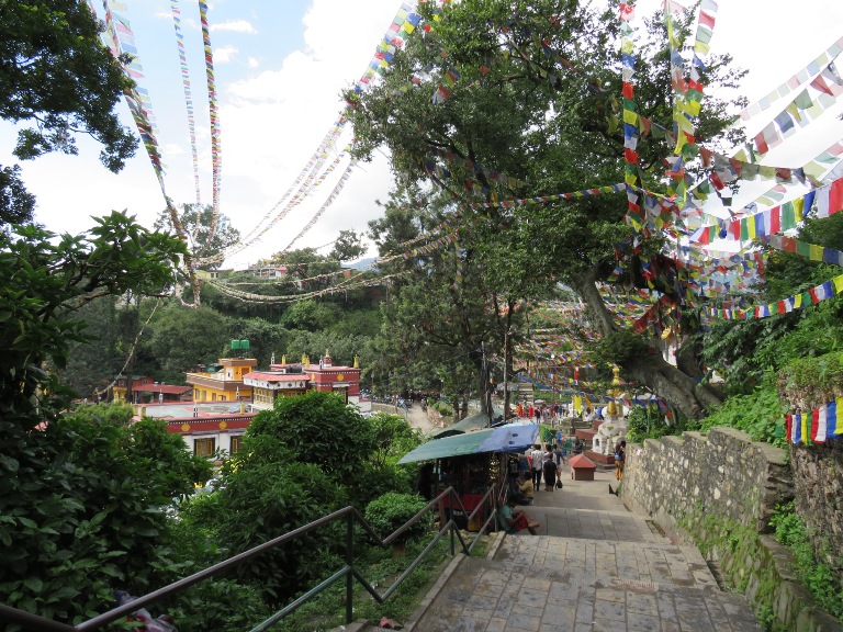 Acolo se află Stupa Swayambhu Mahachaitya, înconjurată de temple protectoare ale lui Budda, case pentru ritualuri, ca Aagan Chhen, Yogamvar, chaityas, altare mici cu statui ale zeităților tantrice și șamanice. Nu lipsesc nici magazinele de la parterul unor clădiri, în care se pot achiziționa obiecte pentru ritualuri, sculpturi de zeități, măști, etc.
