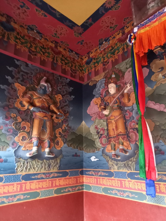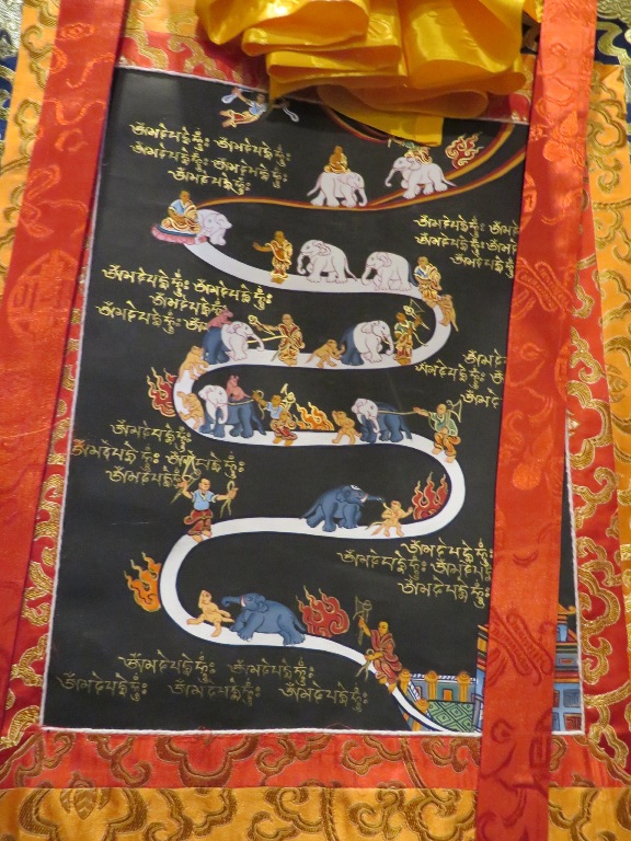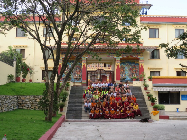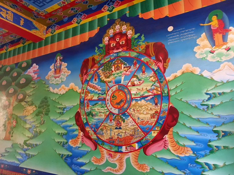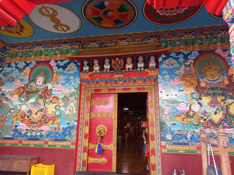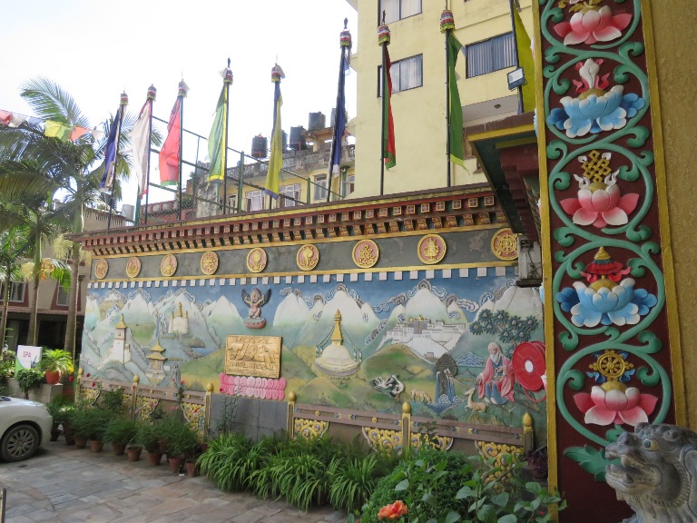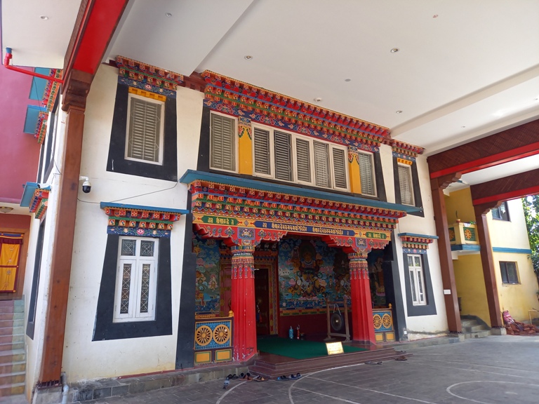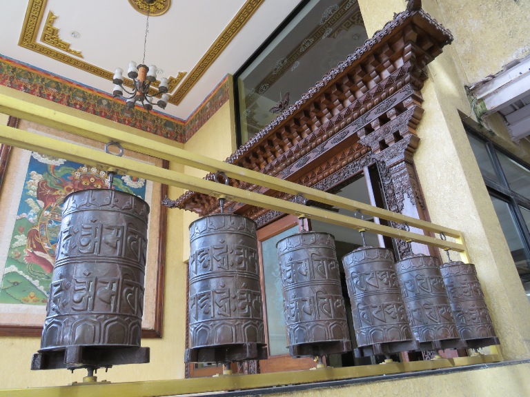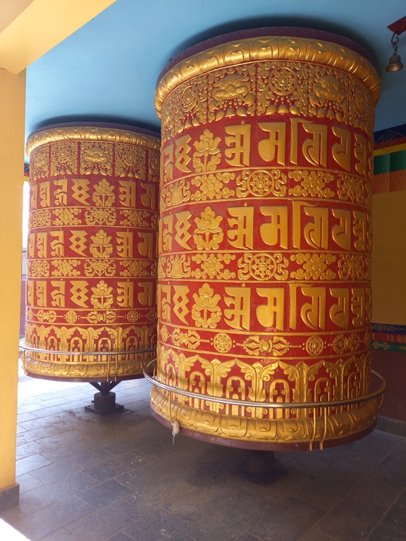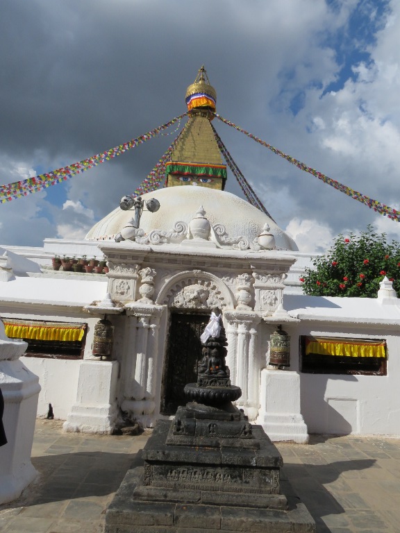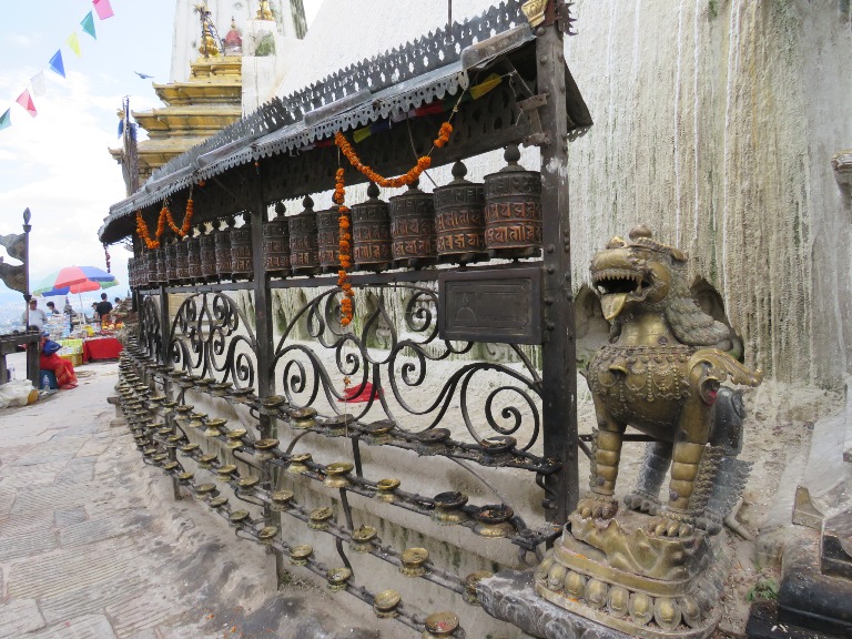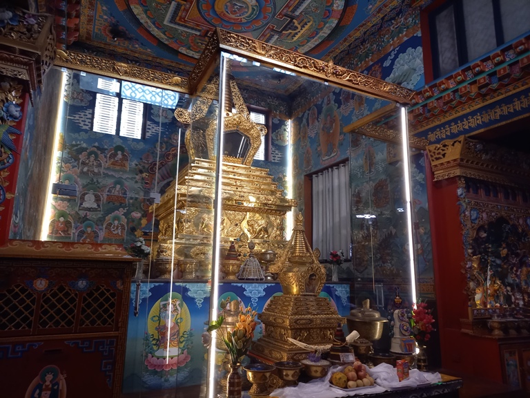 Stupa e înconjurată de roți de rugăciune din alamă. Fiind învârtite în sensul acelor de ceasornic, în timp ce se recită incantații, ele aduc noroc. În jurul ei sunt postate 5 altare mici dedicate celor 5 elemente: Vasupura (pământ), Vayupura (aer), Nagpura (apă), Agnipura (foc) și Shantipura (cer).