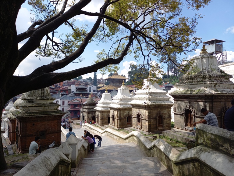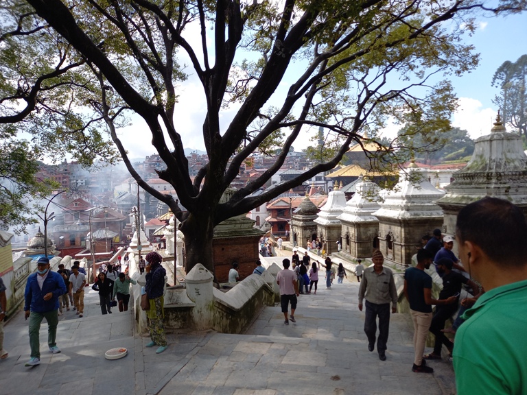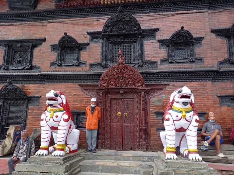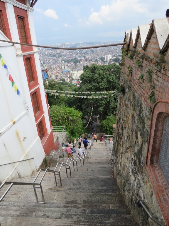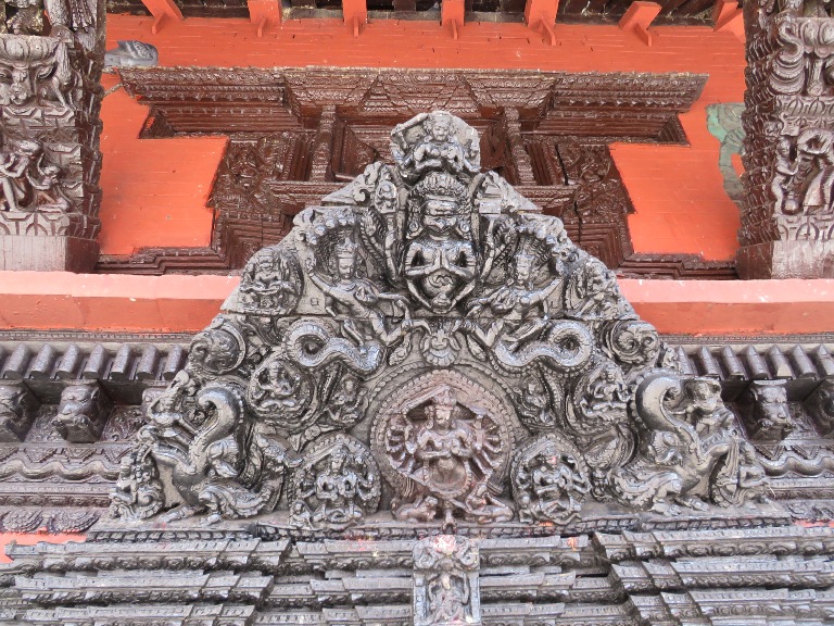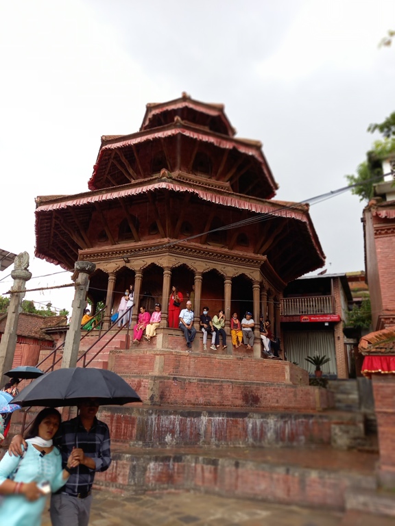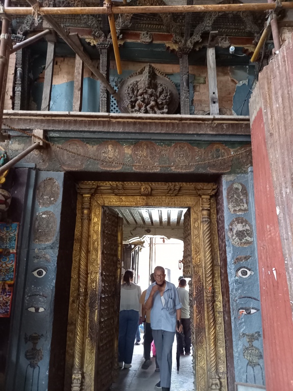 Poate fi accesat pe 2 șiruri de scări, pe cea din est, cu 365 de trepte, construită de Regele Pratap Malla (sec. XVII), ajungându-se direct pe platforma principală a templului.