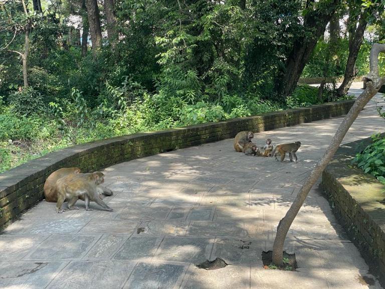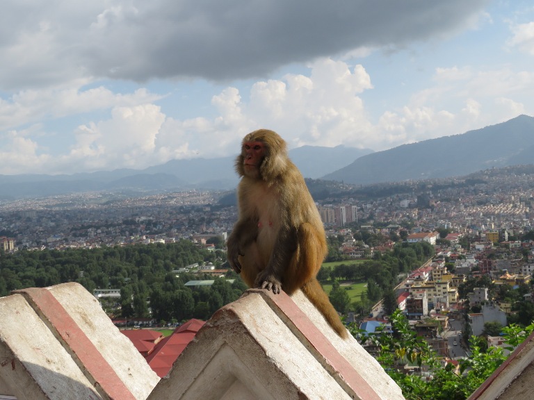 Uimit de puterile luminii și dorind să facă locul ușor accesibil pelerinilor, cu sabia lui cea mare a tăiat munții, formând un defileu. Apa scurgându-se din lac, s-a format valea Kathmandu. Lotusul s-a transformat în dealul Swoyambhu, ulterior pe locul luminii emanate construindu-se stupa. În tot acest timp părul crescându-i, s-a umplut de păduchi. Aceștia s-au transformat în maimuțe sfinte, care și azi trăiesc în complexul templului, mai ales în părțile de nord și vest, după care azi este numit și Templul Maimuțelor.