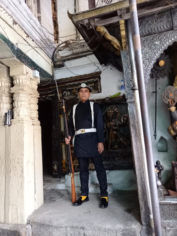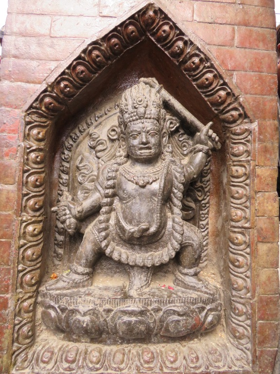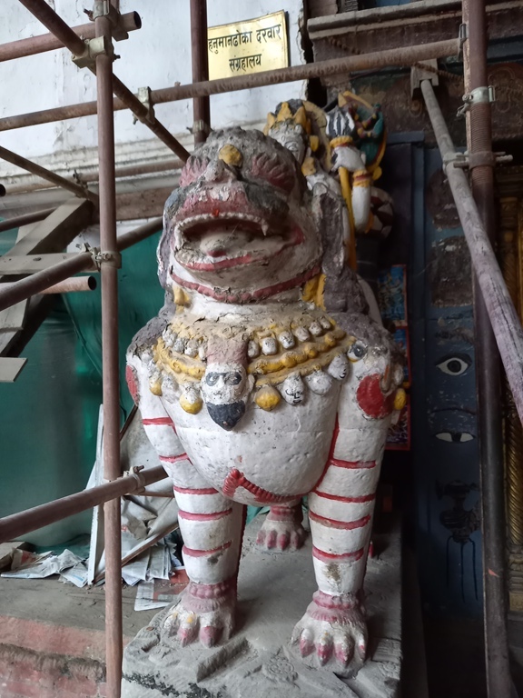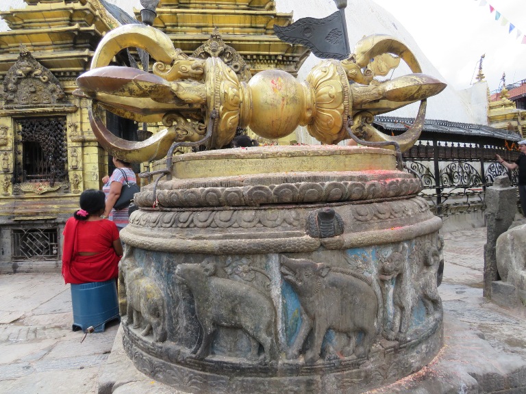 În fața intrării în Stupa, păzită de 2 lei sculptați în piatră, Regele Jaya Pratap Malla a așezat Vajra de aur, o unealtă legendară ritualică simbolizând diamantul, indestructibilitatea și trăsnetul, o forță irezistibilă, în budismul Vajrayana fiind considerată înțelepciunea și compasiunea care realizează fericirea vidului, în hinduism una dintre cele mai puternice arme din univers. Are forma unui sceptru de aur, format dintr-o bilă cu capete ascuțite, așezat pe o mandala din cupru aurit, situată pe o bază rotundă din piatră, pe care sunt sculptate 12 animale, reprezentând simboluri astronomice.