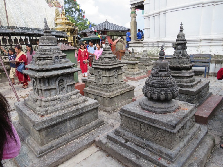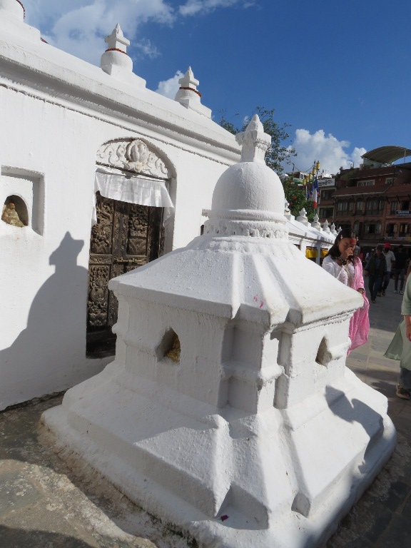 În partea de nord-vest a Stupei se află mai multe Chaityas– Asoka Chaitya (Licchavi Chaitya), Sikharakutta Chaitya, Vajradhatu Chaitya, Bodhisattva Chaturvyuha Chaitya, Jalaharyopari Jinalankrta Chaitya, Dharmadhatu Jinalankrta Chaitya, Jvalavaliyukta Chaitya, Astakonakrti Padmachaitya, Chaturvyuha Buddha chaitya, Sumeru chaitya, ridicate în decursul timpului de diverși devotați, în budism Chaya simbolizând umbra dharani, cu influența sa continuă asupra proceselor mentale ale unui individ, învățături care-i ghidează subtil gândurile și acțiunile de-a lungul vieții.