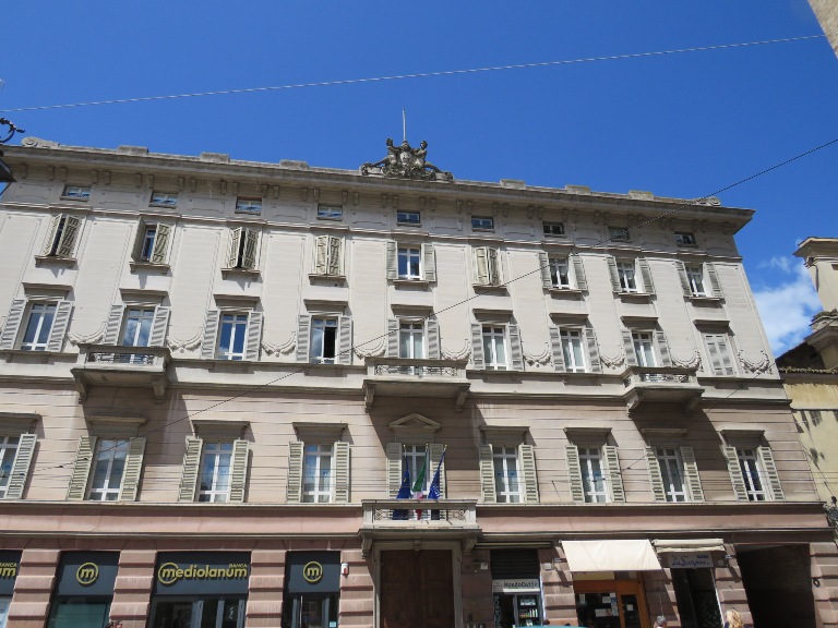 Palatul Primăriei, în stil neo-renascentist, a fost construit în perioada 1884-1886, în partea de est a Pieței de Fân, pe locul unor case achiziționate și demolate, ca sediu al Prefecturii.