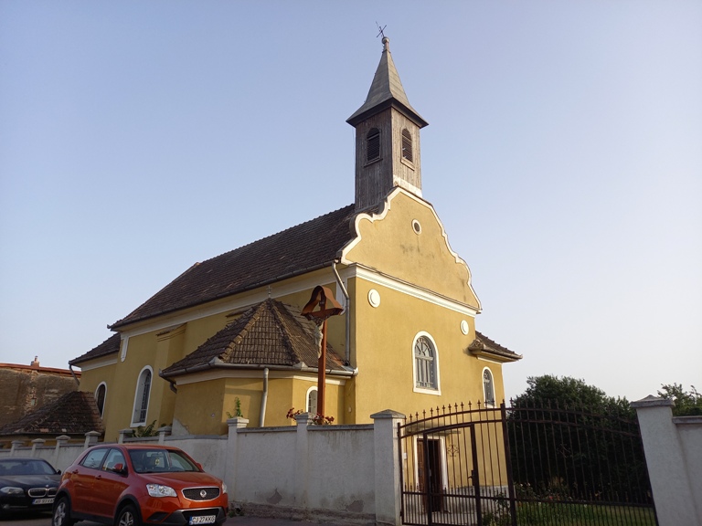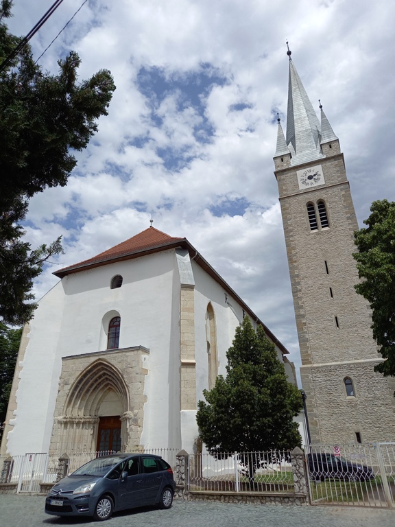 Pe locul unei biserici romano-catolice vechi (1342), devenită prea mică, în perioada 1475-1504 s-a construit o altă biserică, cu hramul „Sf. Nicolae; Sf. Martin”, în a cărei structură a fost încadrată și biserica veche, din ea supraviețuind până azi 2 chei de boltă. Clădirea din piatră, în stil gotic, a fost prevăzută cu un turn-clopotniță, alipit în zona actualei intrări în biserică și înconjurată de un zid de apărare, de 12 metri înălțime, în secolul XVIII distruse de un incendiu.