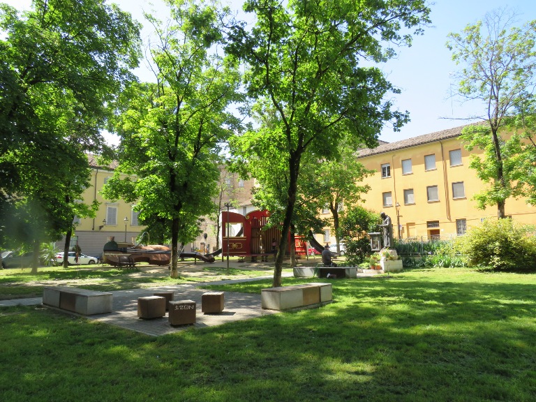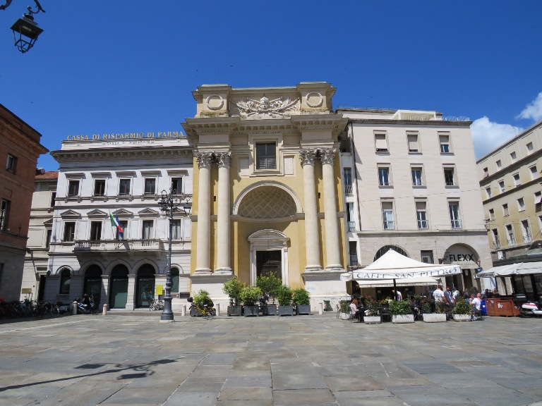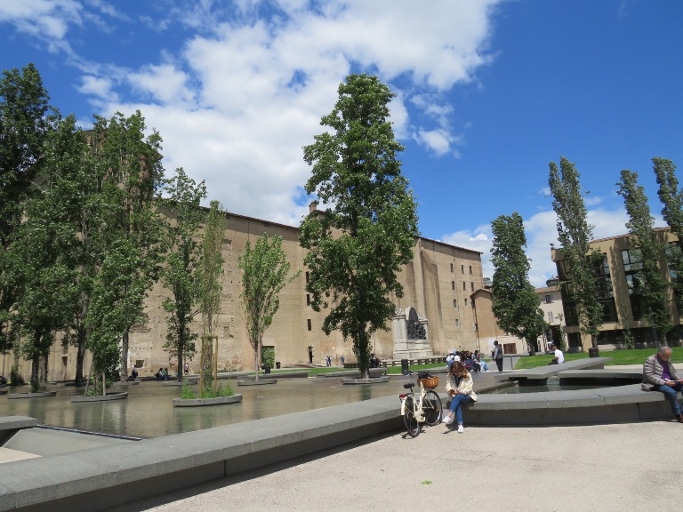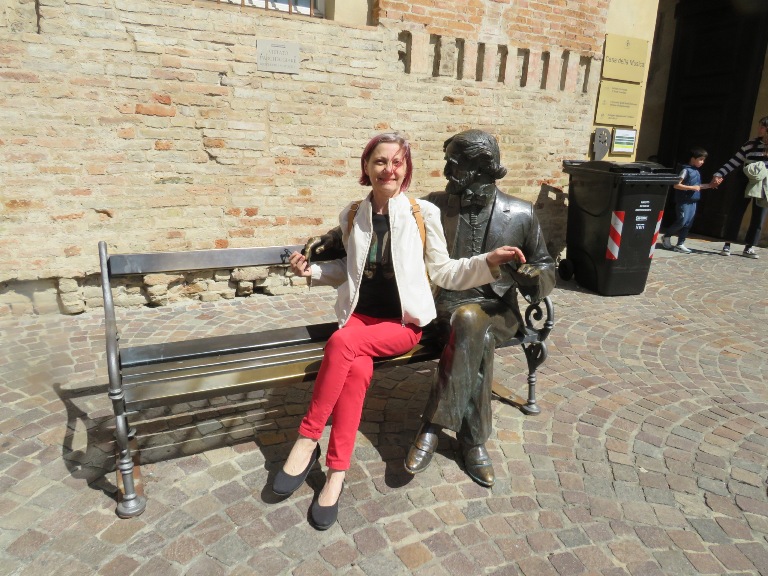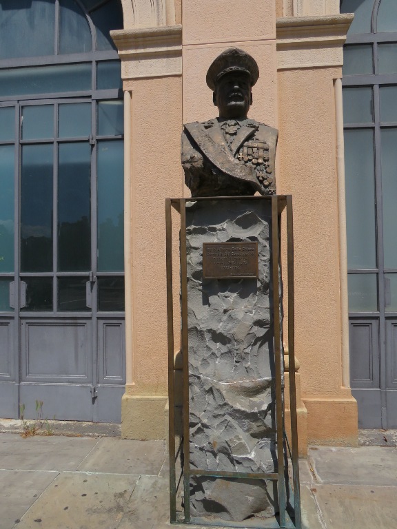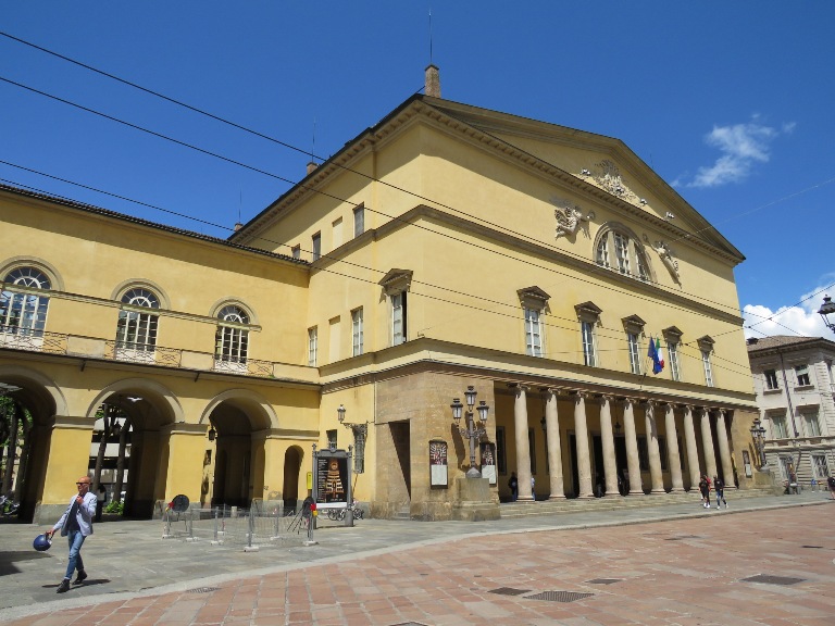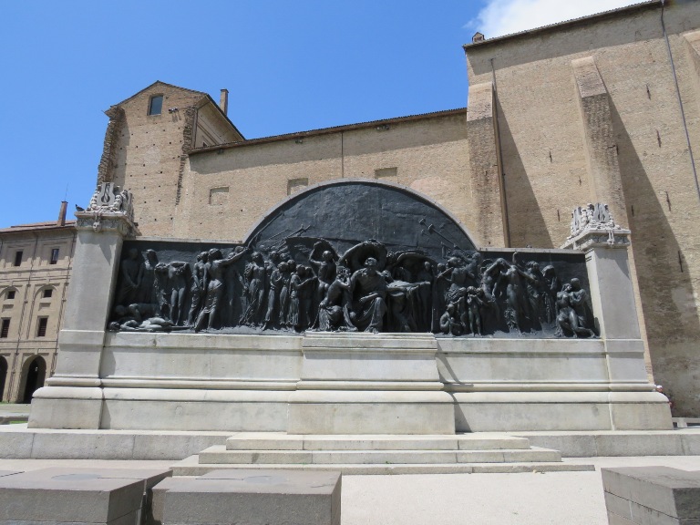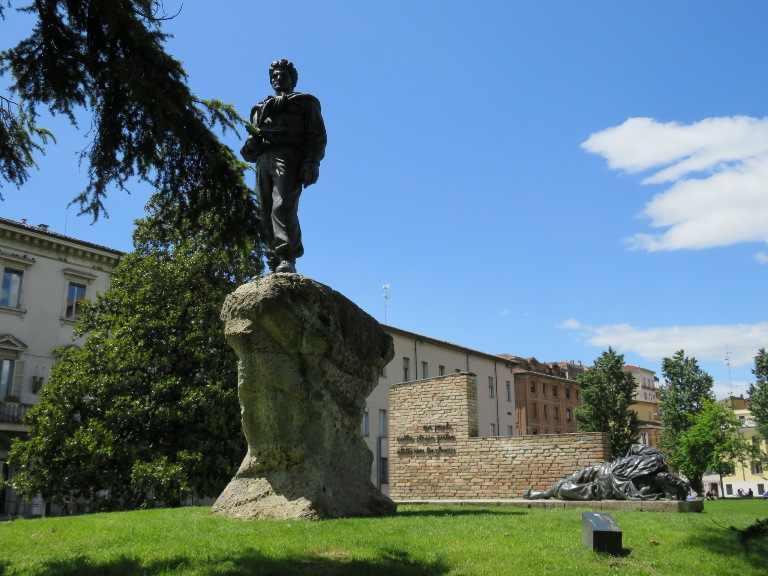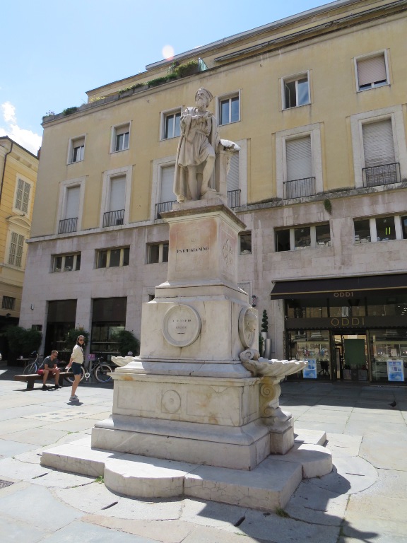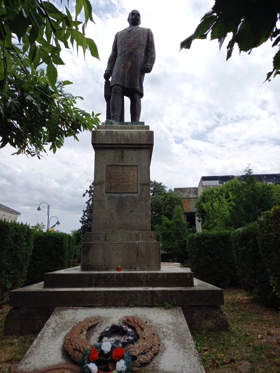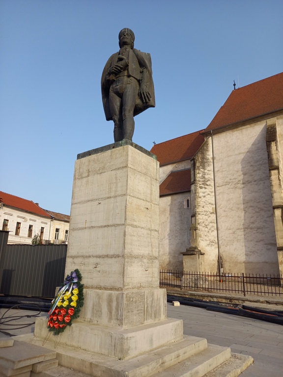 În zona teatrului, lateral de Biserica Romano-Catolică „Sf. Maria”, se află statuia Mihai Viteazul, din bronz, înaltă de 3,5 metri, situată pe un postament înalt. A fost inaugurată de Ziua Forțelor Armate (1988) în Piața Republicii și după sistematizarea centrului orașului mutată în actuala locație (2022).