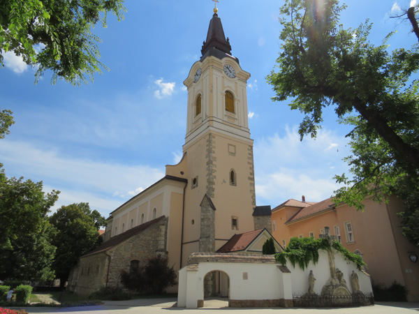 Zona a fost locuită încă din secolele XII-XIII, în perioada Árpád. În 1429 Papa Martin V recunoscând drepturile clerului local, s-a construit o biserică în stil gotic. Ulterior a fost înconjurată cu ziduri de apărare, prevăzute cu turnuri de colțuri și un șanț cu apă. Distrusă sub ocupația otomană, în 1723 Biserica Romano-Catolică „Sf. Fecioară Maria-Ajutorul Creștinilor” (Szűz Mária Keresztények Segítsége templom) a fost refăcută, ulterior modificată în forma actuală (1891), în zona sanctuarului fiind vizibilă și azi parte din biserica inițială. În 1927 interiorul a fost ornat cu picturi, pe laterale prezentând locurile de pelerinaj pentru Sf. Maria și altarul principal cu icoane înfățișându-i pe Sf. Maria, Sf. Ștefan și Sf. Ladislau.