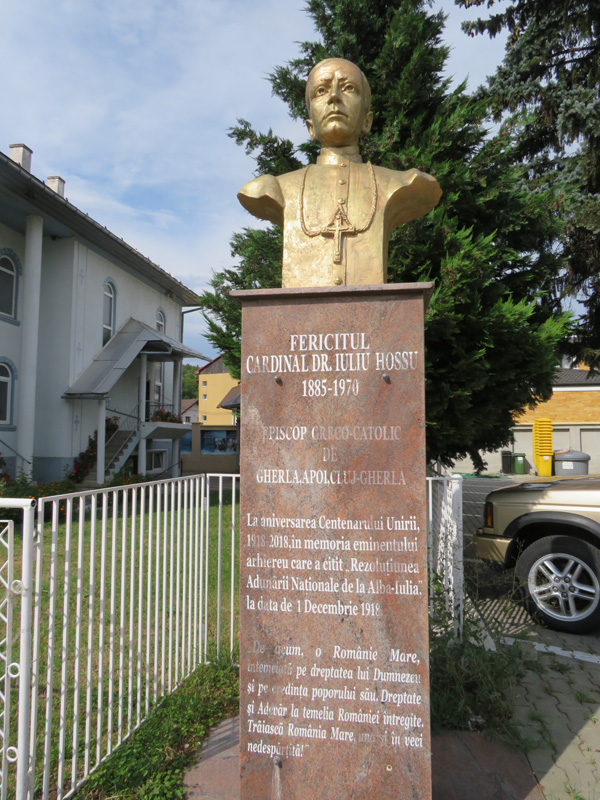 Lângă ea, pe un piedestal, e postat bustul Dr. Iuliu Hossu (1885-1970), Episcop de Cluj-Gherla, apoi Cardinal al Bisericii Greco-Catolice, senator de drept în Parlamentul României, din 1945 membru de onoare al Academiei Române. A fost cel care în Marea Adunare Națională de la Alba-Iulia (1918) a citit proclamația de unire a Transilvaniei cu Regatul României. În Al Doilea Război Mondial a slavat mii de evrei din Transilvania, care urmau să fie deportați. În 1948 opunându-se trecerii forțate a credincioșilor greco-catolici la Biserica Ortodoxă Română, a fost arestat ca deținut politic, în decursul timpului fiind mutat în mai multe centre de detenție din țară, în final fiind înmormântat în Cimitirul Bellu din București și postmortem beatificat de Papa Francisc.