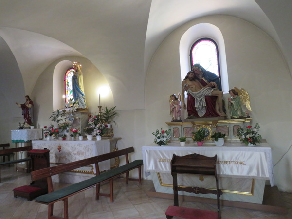 În anii 1931-1933 zidul care separă biserica de piața centrală a fost ornamentat cu sculpturi, central crucea cu Isus răstignit, la care o femeie se roagă, lateral de ea câte o femeie pioasă.