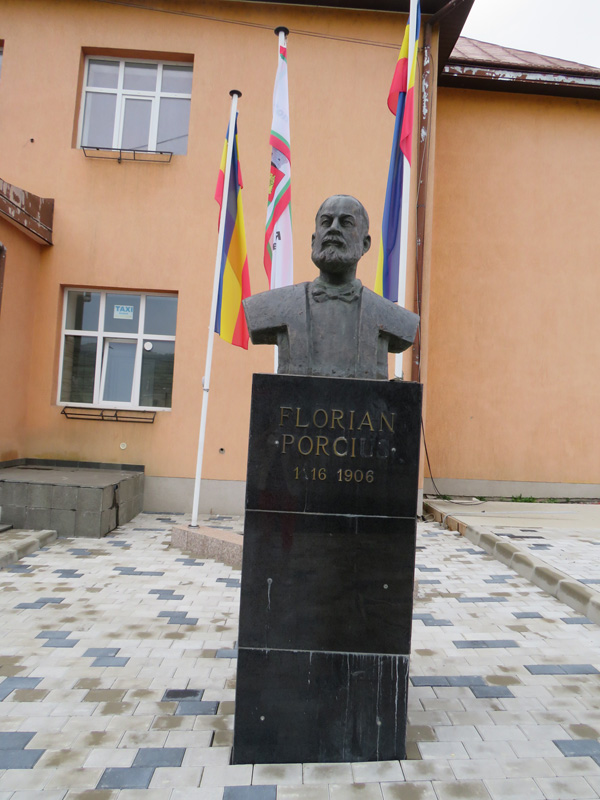 În fața muzeului sunt postate 2 busturi prezentând personalități născute în localitate, unul fiind Florian Porcius.