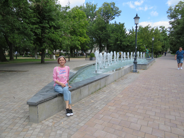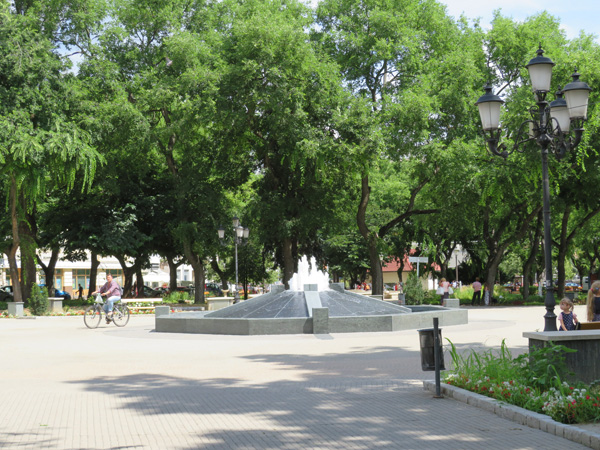 De acolo, urmând o porțiune pietonală, mărginită de copaci, am ajuns la fântâna arteziană Hírös Forrás, din granit negru, adus din Africa de Sud, de cca.1,5 metri înălțime, din care central țâșnește apa, finalizată în anul 2002.