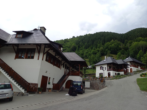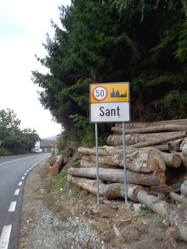 Începând coborâșul, șoseaua a devenit denivelată. Ghinionul meu. A început o ploaie în rafale care a transformat șoseaua în „pârâu”. În plus nu existau indicatoare, nici semnal la telefon, așa că la unele intersecții a trebuit să mă ghidez după instinct. În sfârșit, un drum asfaltat în față… Urmându-l, mi s-a arătat semnul de intrare în localitate și am izbucnit în râs. Ajunsesem în ȘANȚ !!!