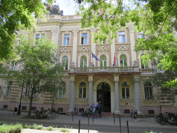 Într-una din case, construită de Ministerul Justiției în anii 1903-1904, funcționează Palatul Justiției (Törvénypalota).