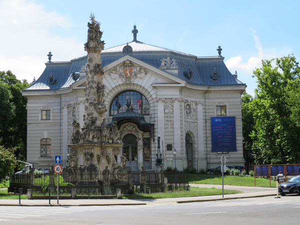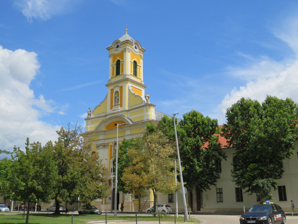 Am părăsit parcul și m-am îndreptat spre Biserica Piaristă „Sf. Treime” (Piarista templom), clădire în stil baroc, construită în anii 1729-1735, în stil baroc, apartinând Mânăstirii Piariste, creată de călugării stabiliți în oraș (1715). Din 1948 a devenit biserică parohială.