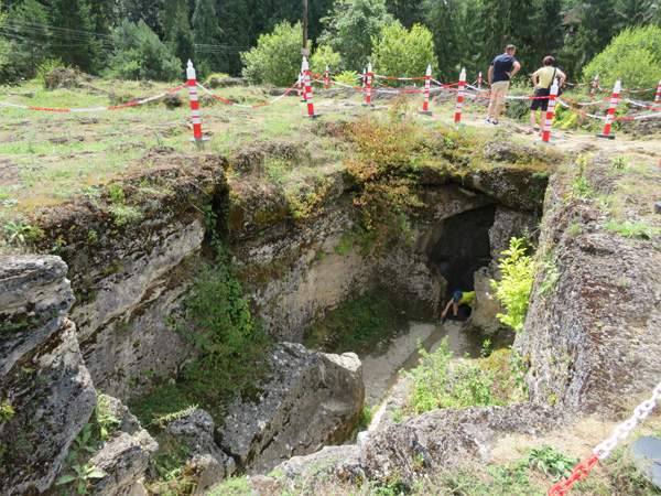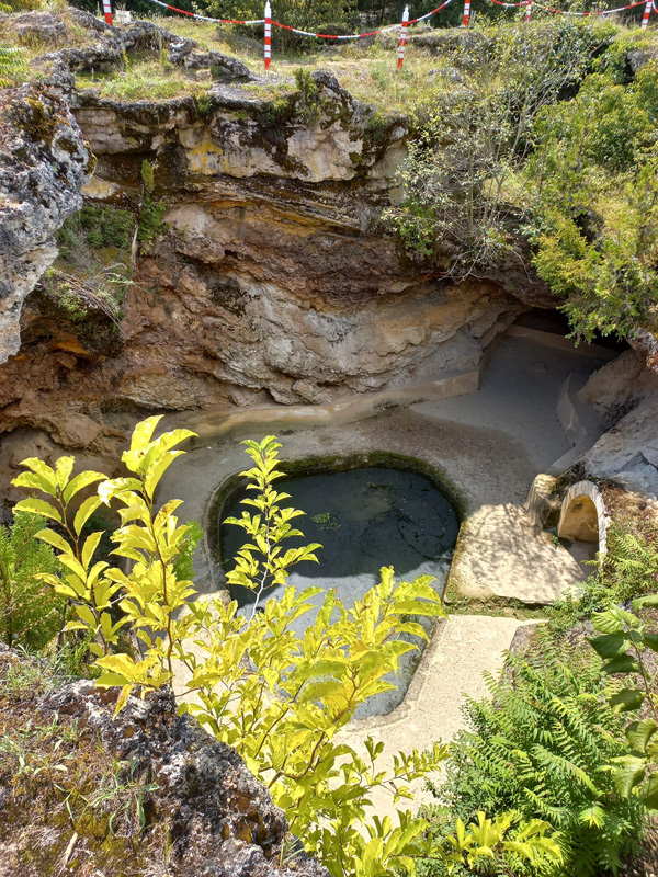 Inițial pe un promontoriu circular, de travertin și tuf calcaros, cu diametrul de 90-95 metri, au săpat bazinele, pe care le-au căptușit cu scândură, apoi rețele de canale prin care apa era dirijată din „lac”, creându-se băile de suprafață, ulterior și cele din subteran.
