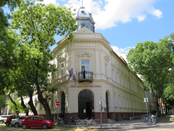 Pe colțul de vis a vis, într-o clădire în stil eclectic, din 1899 a funcționat prima școală, azi numită Școala Zrínyi Ilona(Zrínyi Ilona Általános Iskola),după contesa, mama lui Rákóczi Ferenc, conducătorul Revoluției 1848 împotriva habsburgilor.