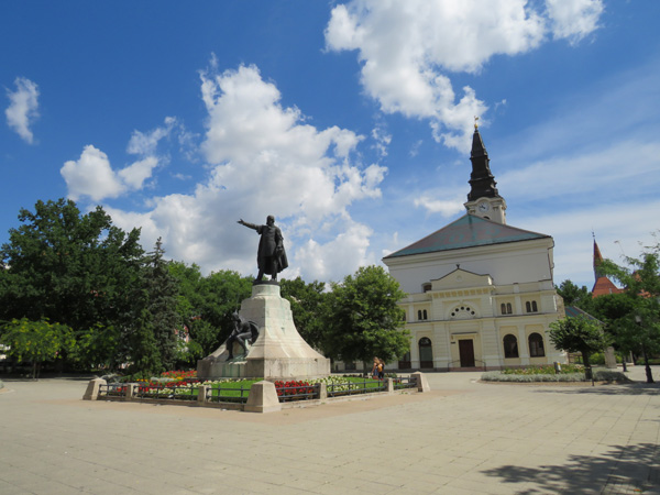 La capătul străzii am intrat în Kossuth tér, piață mărginită de biserici și Primăria orașului, numită după liderul spiritual al Revoluției din 1848-49, din 1906 statuia lui Kossuth Lajos(Kossuth Lajos szobor), din bronz, înaltă de 3,2 metri, situată pe un soclu înalt de granit, fiind postată în centrul ei.