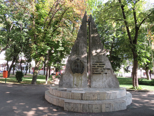 În memoria colonelului, născut la Huși, decedat împreună cu 40 de elevi ai Școlii de Subofiteri în Revoluția din 1989, în timp ce apărau aeroportul Otopeni, post-mortem ridicat în grad, în parc s-a postat Monumentul general-maior Mihai Ion Patras.