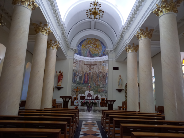 În interior prezintă altarul principal „Nașterea Domnului” și 2 altare laterale.