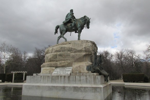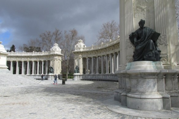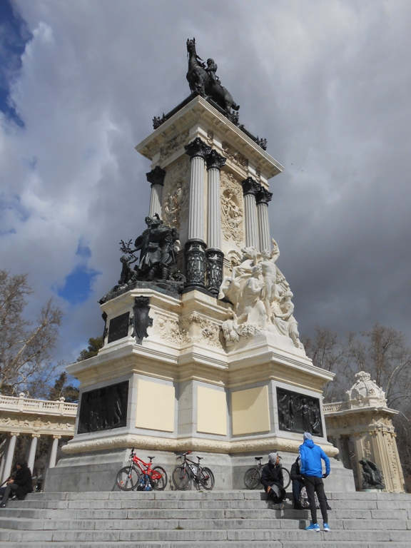 Pe un piedestal au fost postate perechi de grifoni, deasupra lor patru statui ale zeiței Victoria, pe contraforturi patru statui ce reprezintă domeniile Spaniei-Principatul Cataluniei, Regatele León, Aragon și Castilia, între ele alte statui.
