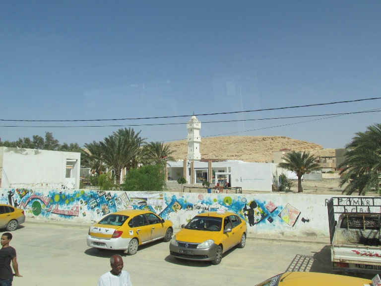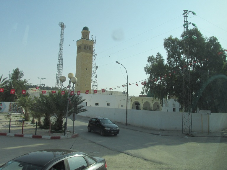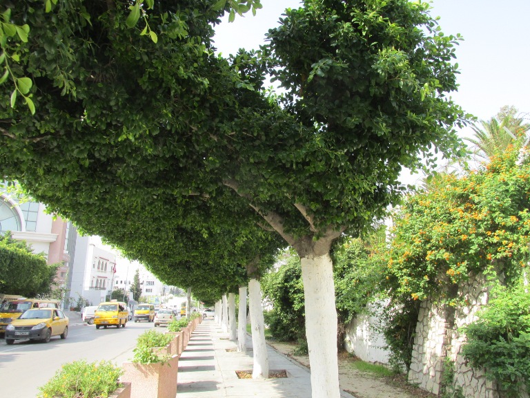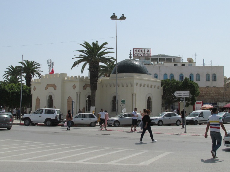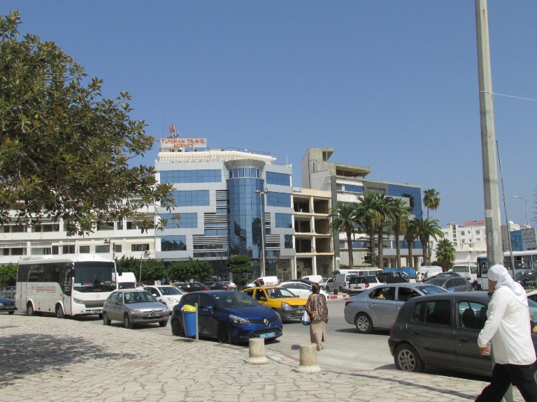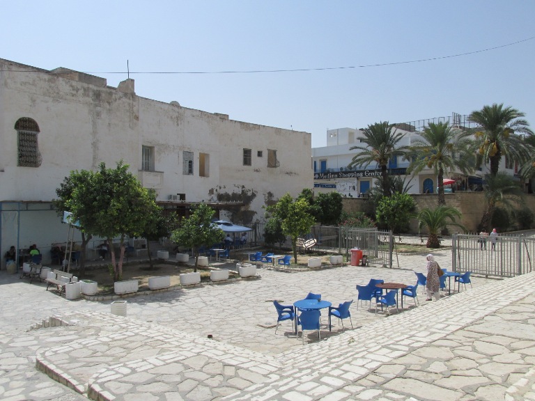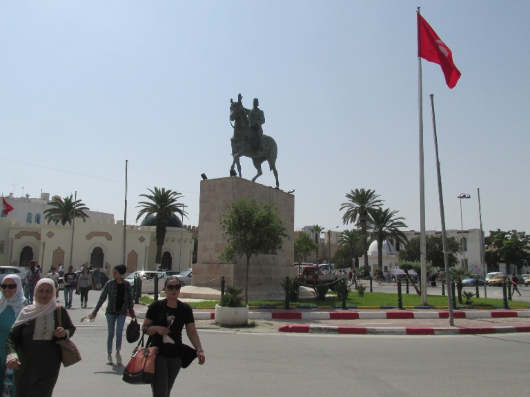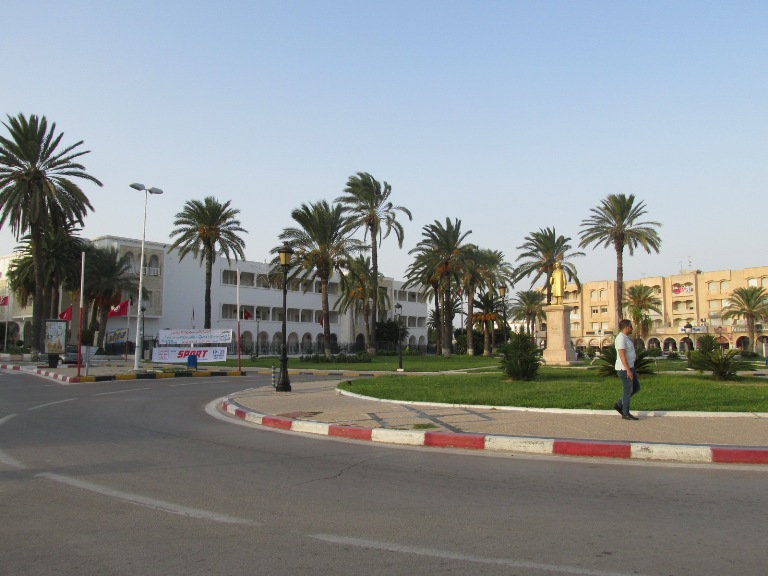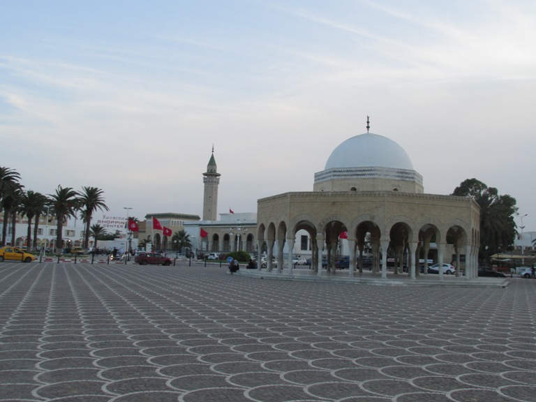 Vis a vis de moschee se întindea Piața Artelor, cu alei străjuite de palmieri , în care era postat bustul lui Bourgbuiba.