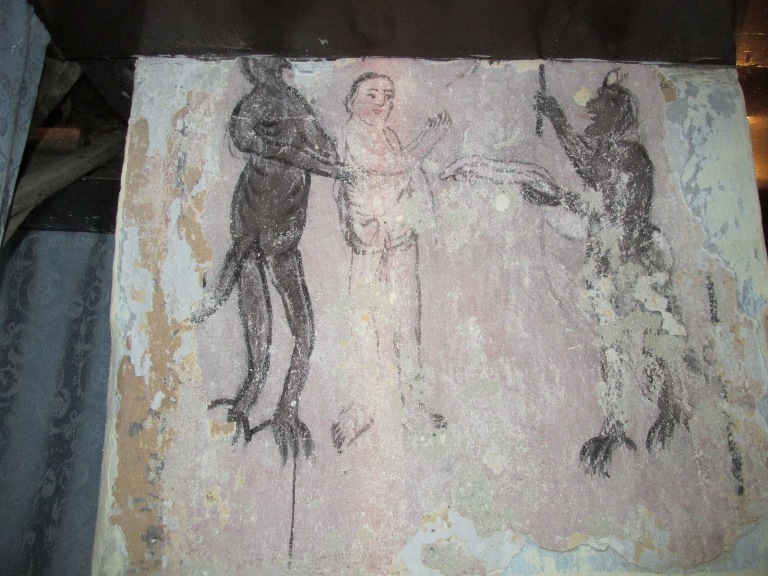 Din picturile de pe pereți au rămas doar câteva scene, în stare avansată de degradare.