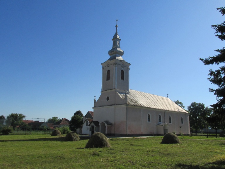 Fiind oameni săraci, cu case din pământ, nu și-au putut ridica o biserică. În 1752 au adus din Chisindia o Biserică de lemn care, cu modificări, s-a păstrat până azi. Clădirea a fost realizată cu bârne din lemn de gorun, îmbinate cu cuie de lemn. Acoperișul din șindrilă a fost prevăzut cu o streașină largă. În decursul timpului peretele vestic a fost mutat 1 metru, pentru a extinde spațiul destinat femeilor.