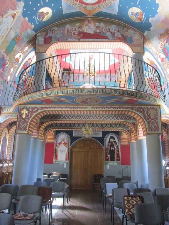 Interiorul a fost pictat în frescă, reprezentând personaje și scene biblice.
