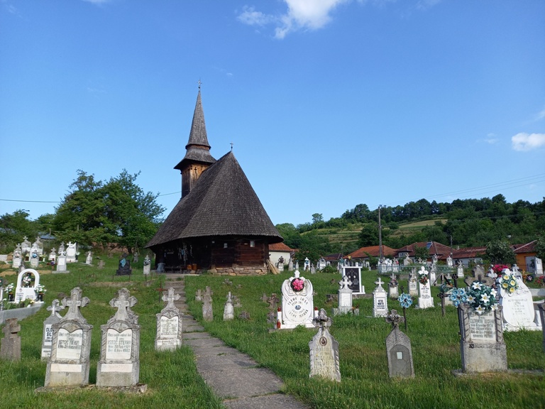 Pentru a vedea biserica veche, a trebuit să mă deplasez până în cimitirul satului, situat pe un deal de la marginea lui.