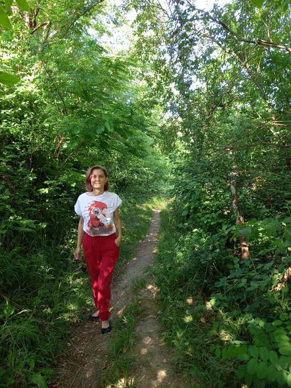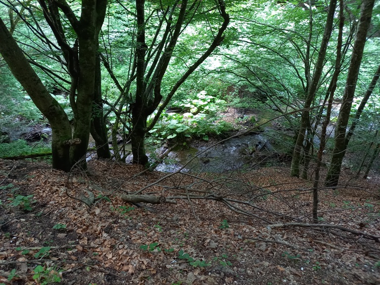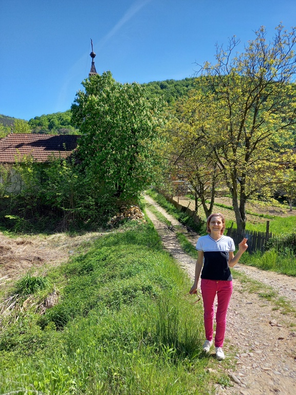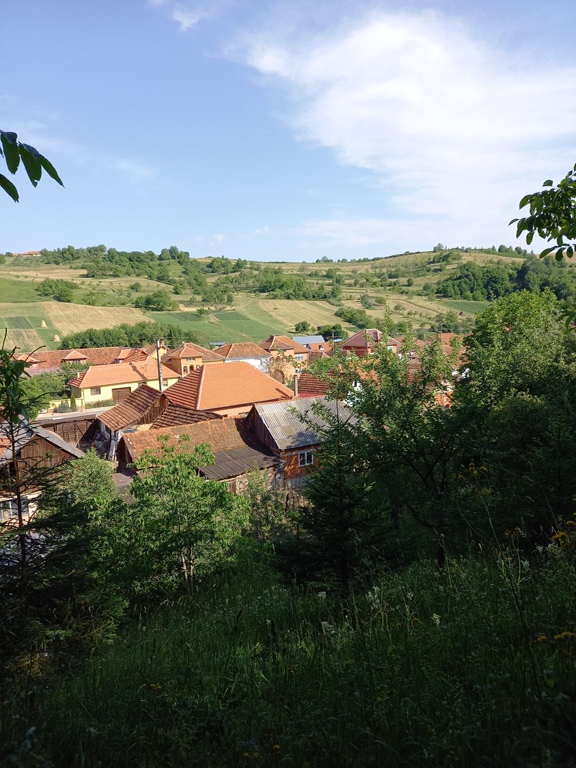 Traversând satul, cu casele răsfirate pe munte, am urmat Valea Boiului, inițial pe un drum forestier, apoi urcând și coborând o potecă prin pădure.