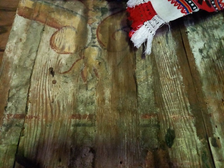 Interiorul pictat direct pe lemn (1778), în decursul timpului s-a șters.