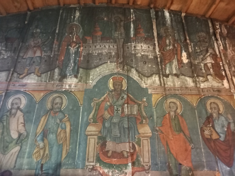 Până azi s-au păstrat picturile de pe ușile altarului și iconostas, efectuate în 1793.