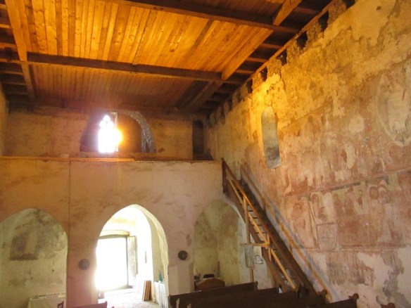 Ne-am întors la Hațeg și am parcurs 3 km în altă direcție, până în localitatea Sântămăria Orlea, pentru a vedea o altă biserică veche din piatră în care se găsește cel mai vechi ansamblu pictural din țară. Am avut norocul să putem intra. Deținătorul cheilor, un fost cadru militar, ne-a deschis, taxat și ne-a povestit detaliat istoria ei.