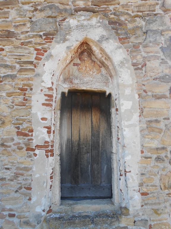 Inițial intrarea se făcea printr-o ușă situată sub turn, deasupra căreia se afla un arc pe care s-a păstrat un fragment din frescele exterioare cu care a fost acoperită biserica. Ulterior intrarea s-a mutat pe o latură a bisericii.