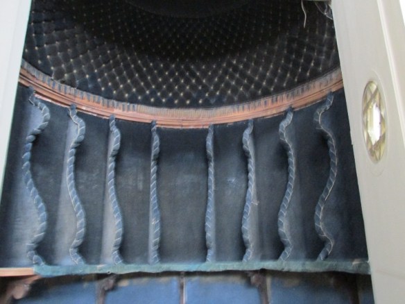 În interiorul capitonat cu catifea bleumarin, „stropită” cu mici stele aurii ale lui David, a fost creată o etajeră cu despărțituri, în care erau adăpostite sulurile, pe sortimente, interior păstrat până azi.