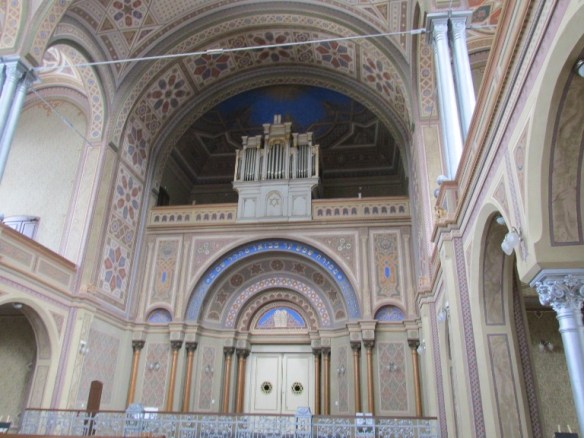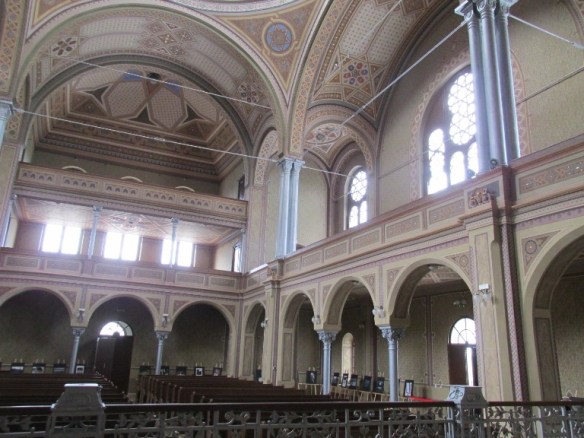 Partea de jos a navei, unde stăteau bărbații, a fost separată printr-o balustradă de fier cu motive vegetale, de partea în care se citeau rugăciunile și se afla dulapul cu Tora, situată spre est.