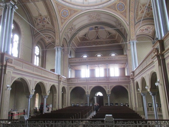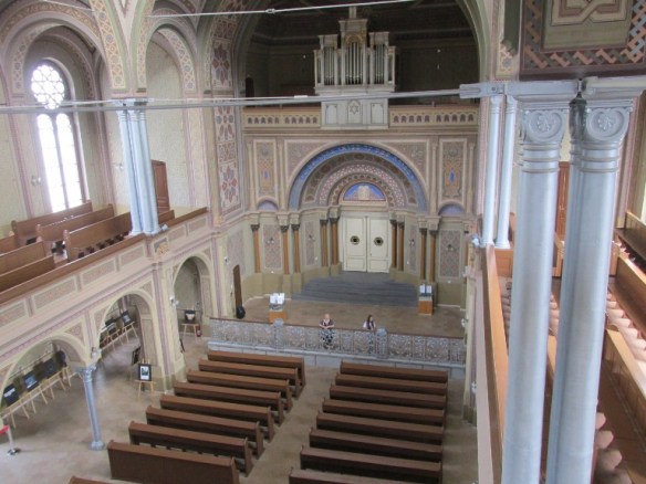 Interiorul este foarte luminos, sinagoga fiind prevăzută cu 16 ferestre mari.