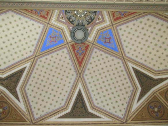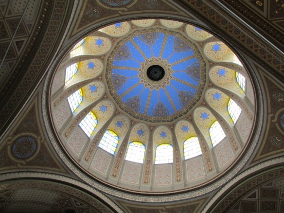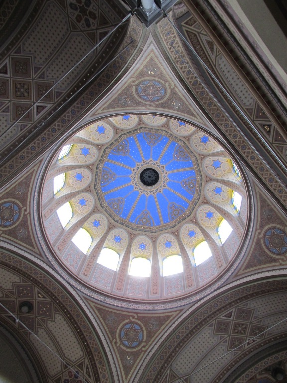 Bolta cupolei, central albastră ca cerul, a fost înconjurată cu picturi reprezentând forme geometrice, la evrei nefiind permise reproduceri după personaje.