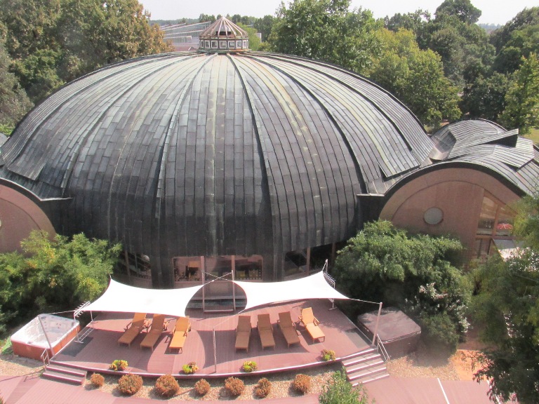 Trecând pe sub o arcadă deasupra căreia, lateral, se afla un mecanism, mi s-a explicat că pe vremuri era o instalație la care era înhămat un cal. Prin deplasarea lui pe suprafața arcadei acesta trăgea de un lanț care deschidea un sistem prin care apa se scurgea până jos la băi.