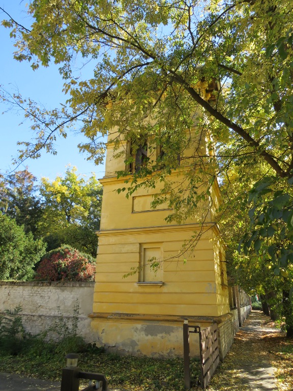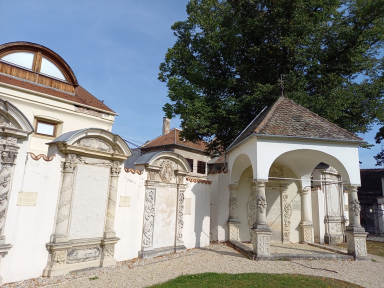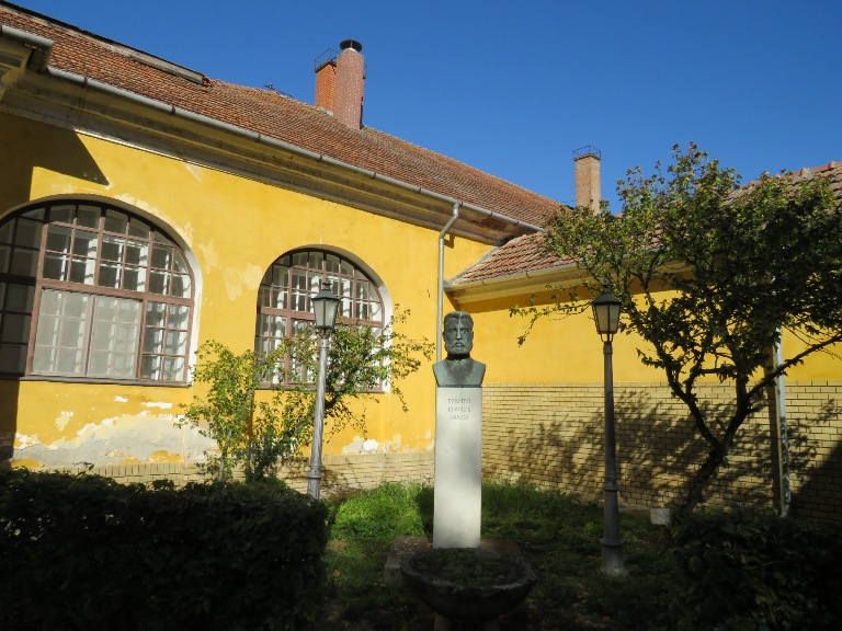 În fața clădirii de lângă capelă a fost postat bustul lui János Szántó Kovács (1852-1908)fermier, proletar și activist social-democrat, care a încercat introducerea ideilor socialismului în Ungaria, mai ales în domeniul agrar.