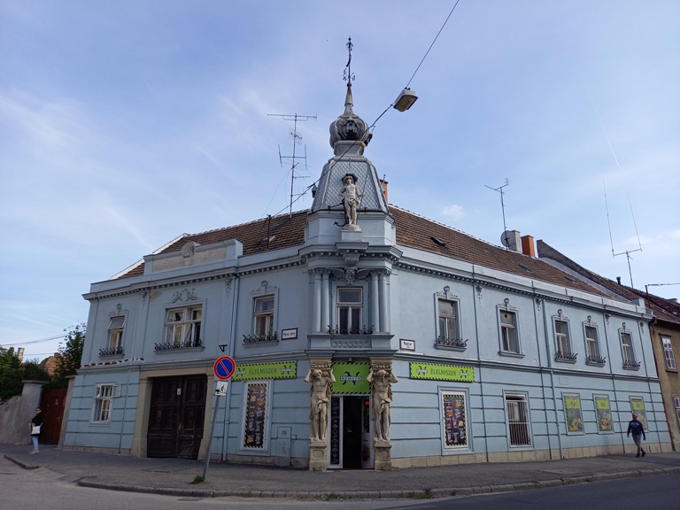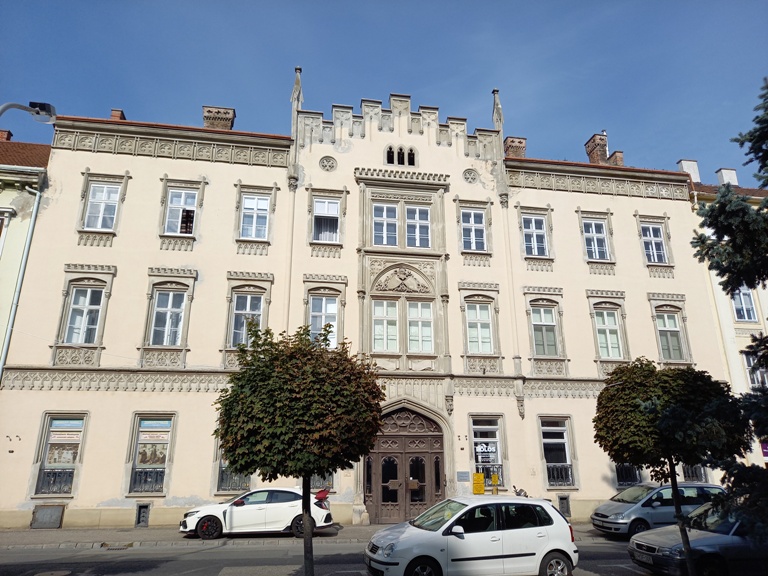 De acolo am urmat o stradă mărginită de case de epocă între care mi-a atras atenția o clădire în stil Art Nouveau, fostul PalatBogenrieder (Bogenrieder Palota), construit în 1914 de un arhitect maghiar din Timișoara pentru farmacistul József Bogenrieder.