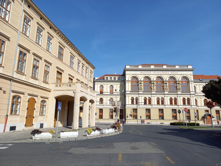 În ultima zi a unei excursii prin Ungaria, pentru a vedea măcar centrul acestui oraș, am făcut o scurtă oprire, parcând în Piața Széchenyi, în apropierea Centrului Cultural Hevesi Sándor (Hevesi Sándor Művelődési Központ), construit în anii 1972-1976, în el desfășurându-se diferite evenimente culturale și piese de teatru.