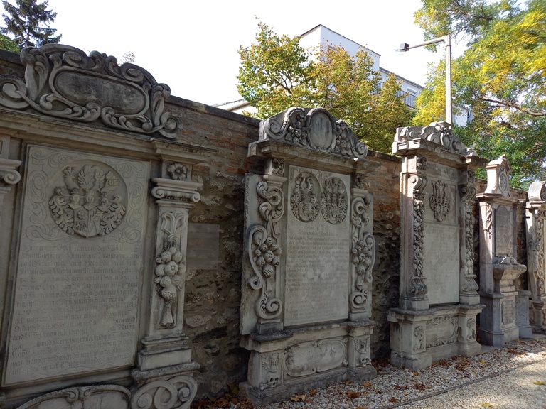Perimetrul vilei este înconjurat cu un zid pe care, în interior, se pot vedea mai multe monumente funerare din vechiul cimitir lutheran.