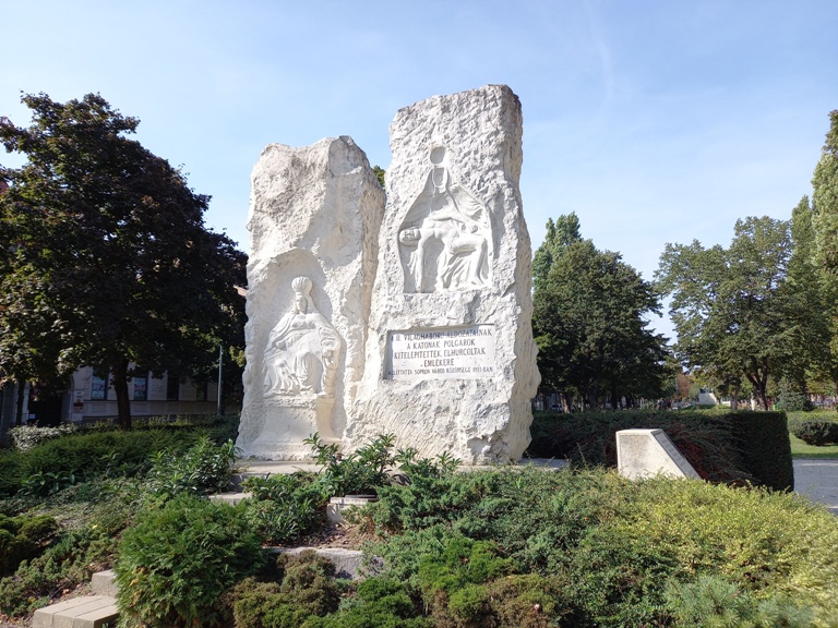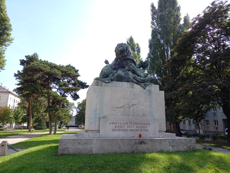 Monumentul Eroilor Regimentului de Infanterie 76 din Primul Război Mondial (Az első világháború hőseinek emlékműve 76. gyalogezred), un leu rănit de o săgeată, așezat pe un soclu înalt de 1,6 metri, evocă cei 8,625 de soldați ai regimentului, pierduți în război.