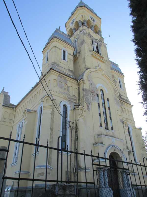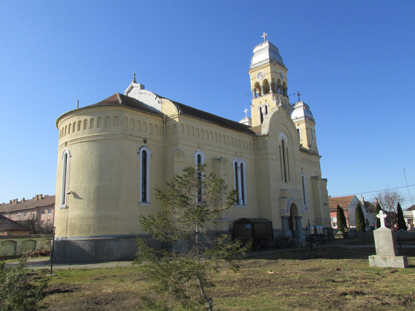 Clădirea, în stil clasicist, cu o capacitate de 220 locuri, a fost prevăzută cu un turn cu 3 clopote. În cele 4 colțuri ale actualului parc au fost postate foișoare care, în timpul procesiunilor, erau amenajate cu altare la care Episcopul, într-un baldachin purtat de 4 ofițeri ai hergheliei, se oprea pentru scurt timp.
