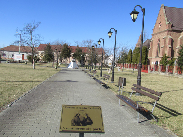 Pe latura de sud a parcului, înconjurată de copaci, se înalță Biserica Romano-Catolică „Sf. Gheorghe” (Szent György- római katolikus templom). Fiind autorizată de Regele Ferdinand V, în 1843 a fost construită de Guvernul Regal de Agricultură al Ungariei, împreună cu conducerea hergheliei, ca biserică independentă, căreia i s-a dat hramul sfântului ocrotitor al soldaților. Avea un pastor militar, cu statut de capelan.