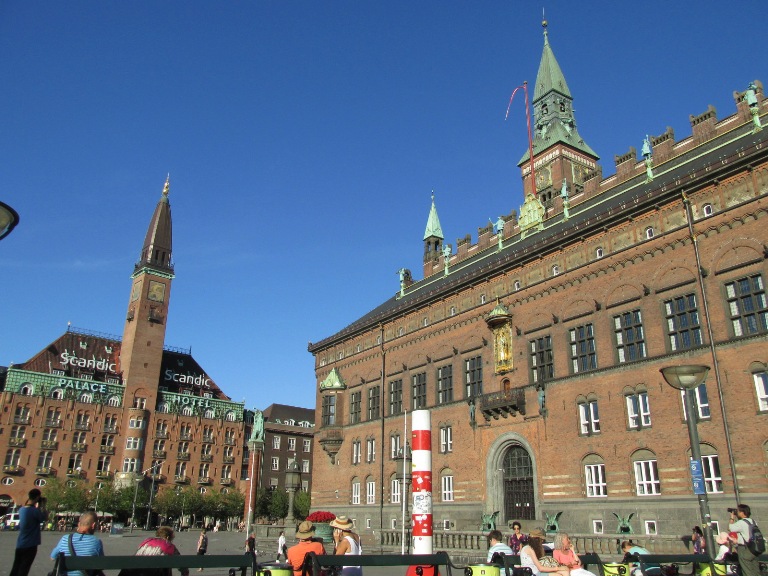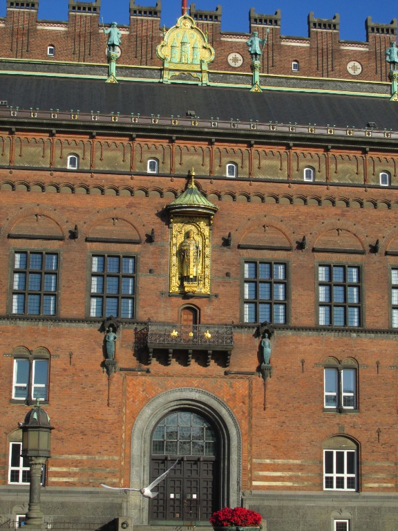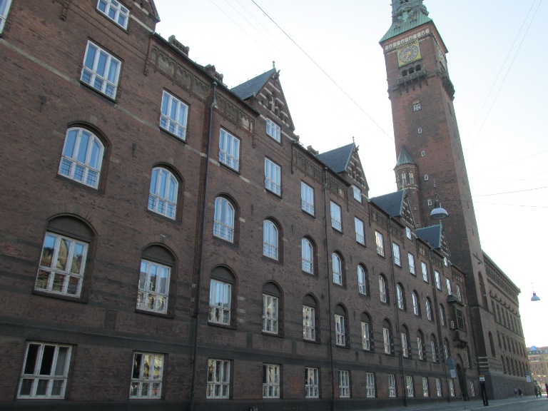 Pe latura din stânga se află Primăria Békéscsaba (Békéscsabai Városháza), care a funcționat începând cu anul 1785, într-o clădire cu acoperiș de paie. Clădirea a fost înlocuită cu una din cărămidă, cu un etaj (1828), înălțată cu al doilea etaj în 1853, apoi înlocuită cu actuala, în stil eclectic (1871-1873), extinsă în 1925 cu noi aripi, când s-a amenajat sala de ceremonii, al cărei tavan a fost pictat în frescă, prezentând Ungaria. Pe fațada principală au fost postate stema orașului, flancată de zeițele Ceres (a agriculturii) și Themis (a dreptății), îndepărtate în anii 1950. Azi sala de ceremonii e folosită și pentru desfășurarea unor evenimente.