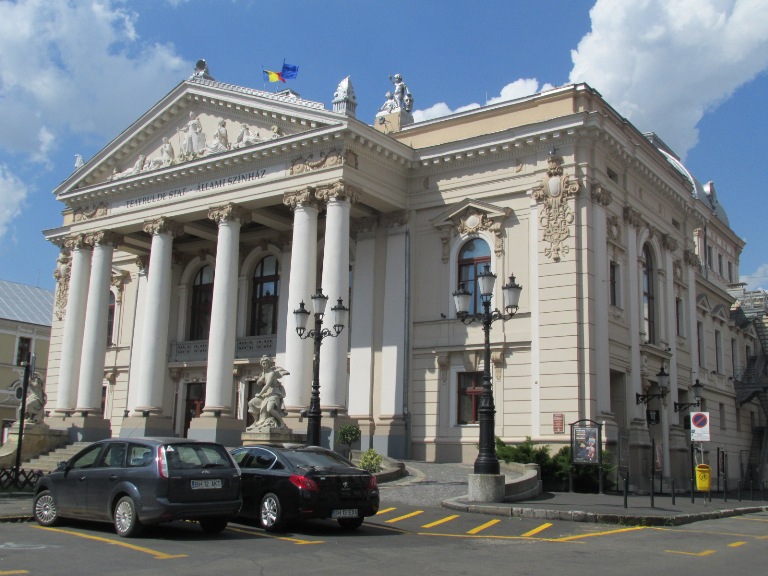 În spațiul verde din fața teatrului azi se află statuia Cicliștii Olimpici (Olimpia – Kerékpáros szobor), prezentând 3 cicliști pedalând, roțile bicicletelor simbolizând cele 5 inele olimpice. A fost dezvelită în 2021, o dată cu ceremonia de deschidere a Jocurilor Olimpice de la Tokyo, locația sa finală urmând să fie în fața Sălii de Sport, la acel moment în renovare.
