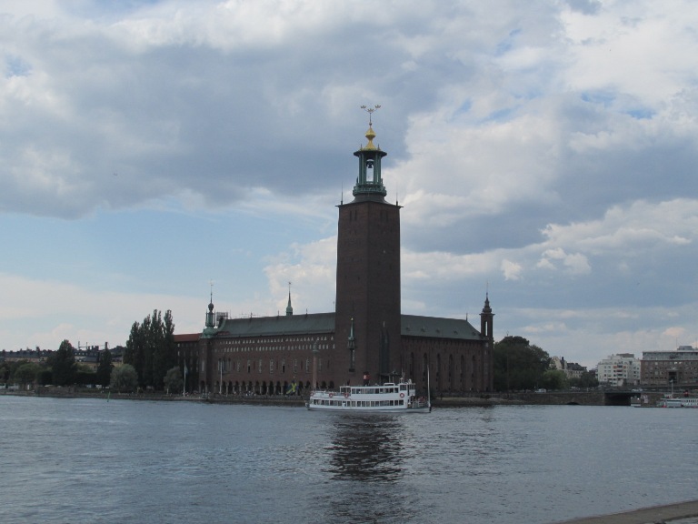 Pe malul opus al apei se înălța Primăria Stockholm.