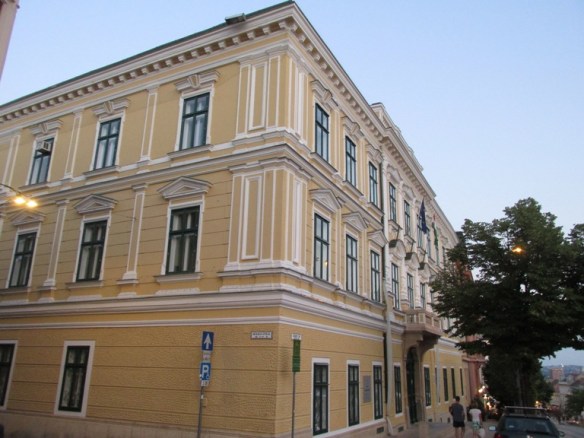 Situată pe colț, în 1891 a fost construită o clădire în stil eclectic în care actual funcționează  Judecătoria  Pécs (Pécsi Jarasbirosag).