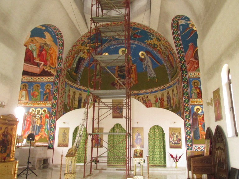 Construcția fiind terminată, interiorul bisericii a fost pictat în frescă (2005).